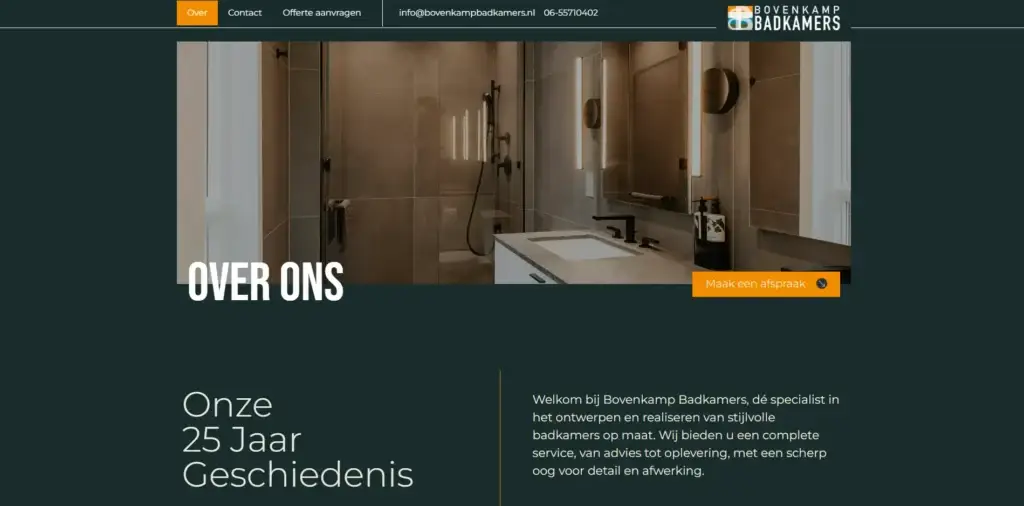 Bovenkamp Badkamers maakt badkamers op topniveau: stijlvol, comfortabel en helemaal op maat. Voor hun nieuwe website wilden ze een uitstraling die daar perfect bij past. De opdracht kwam terecht bij Stijn van Webstijn – een goede vriend én vaste samenwerkingspartner van ons.