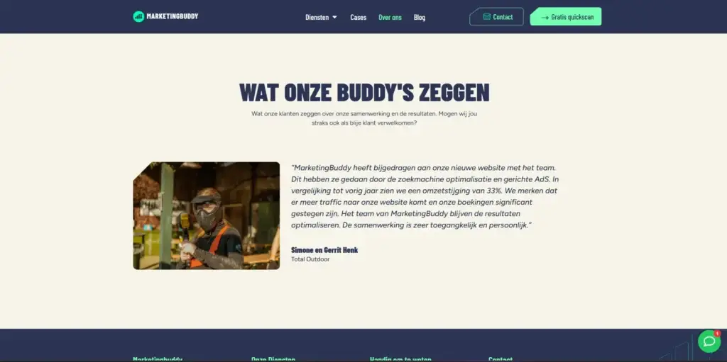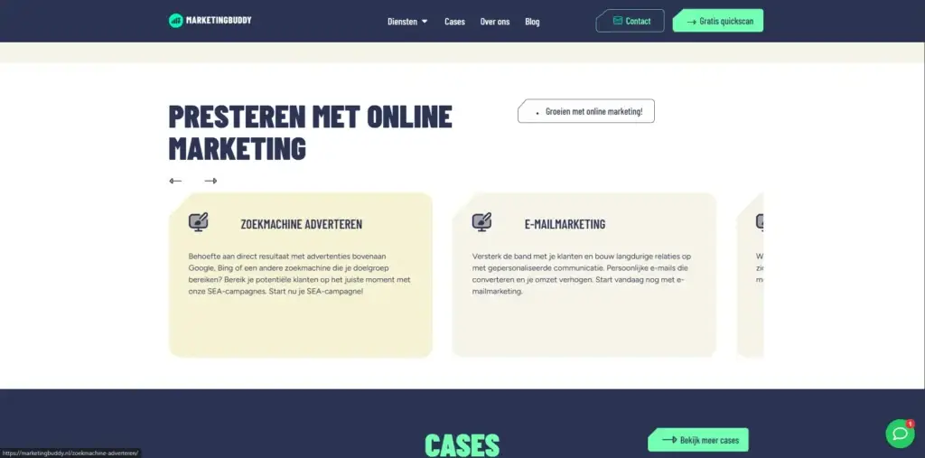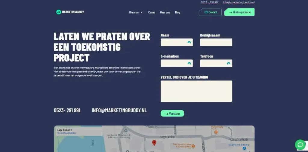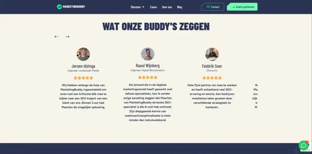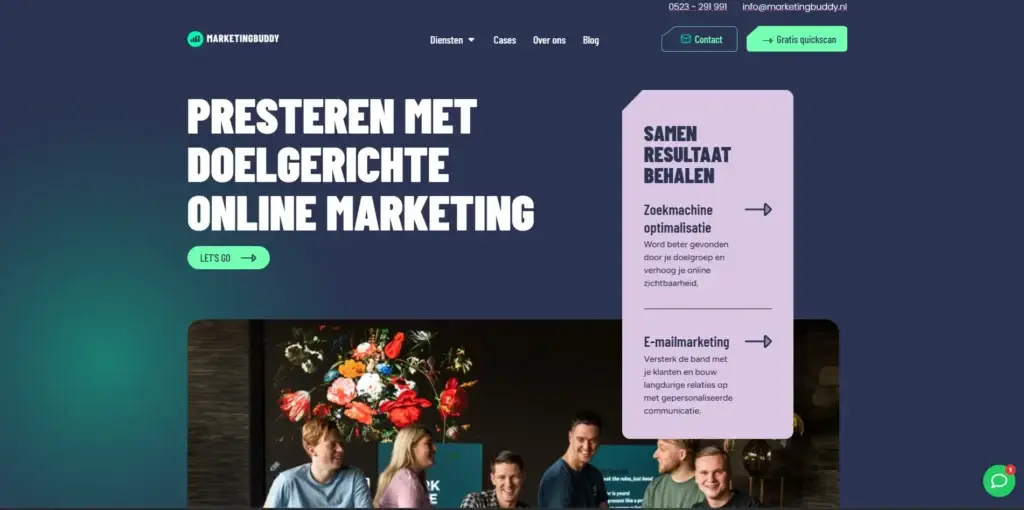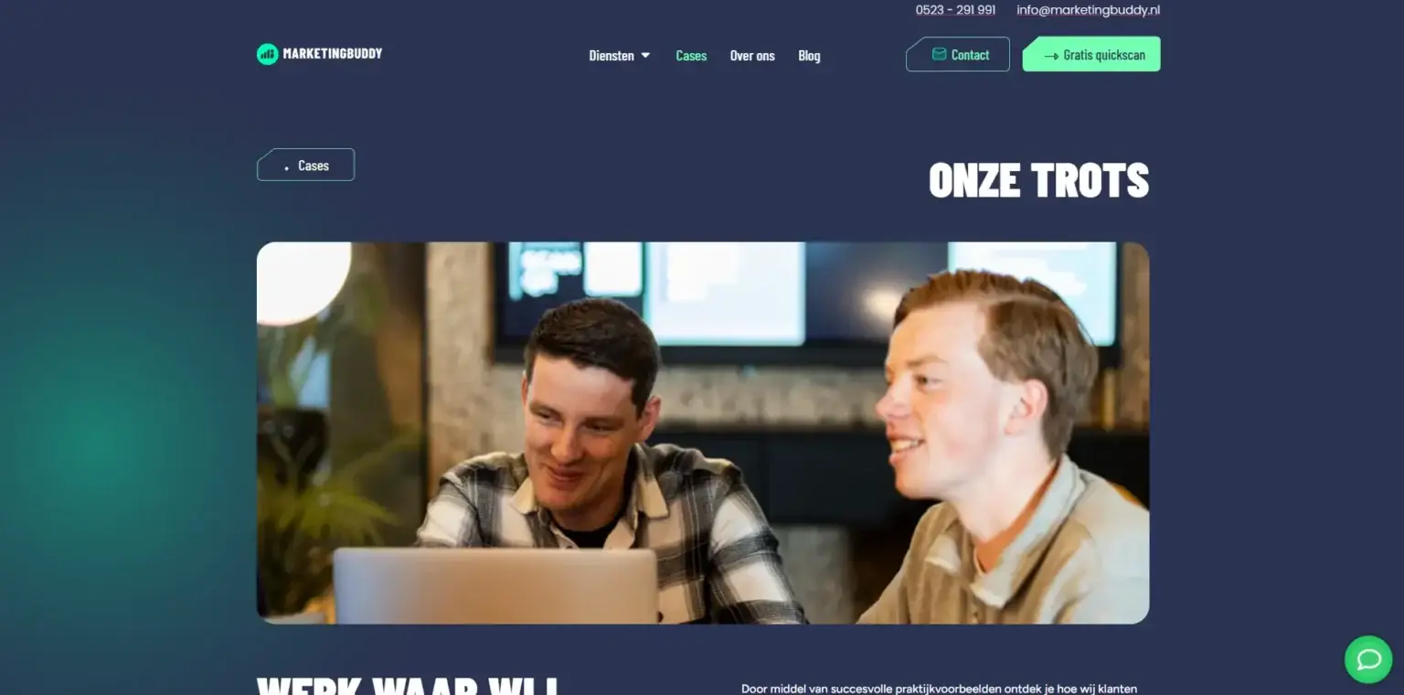 Marketing Buddy had zelf al hosting geregeld. Wij hebben de website klaargezet, alles getest en gezorgd dat de livegang soepel verliep. Ook na de lancering stonden we nog even klaar voor kleine aanpassingen of vragen.