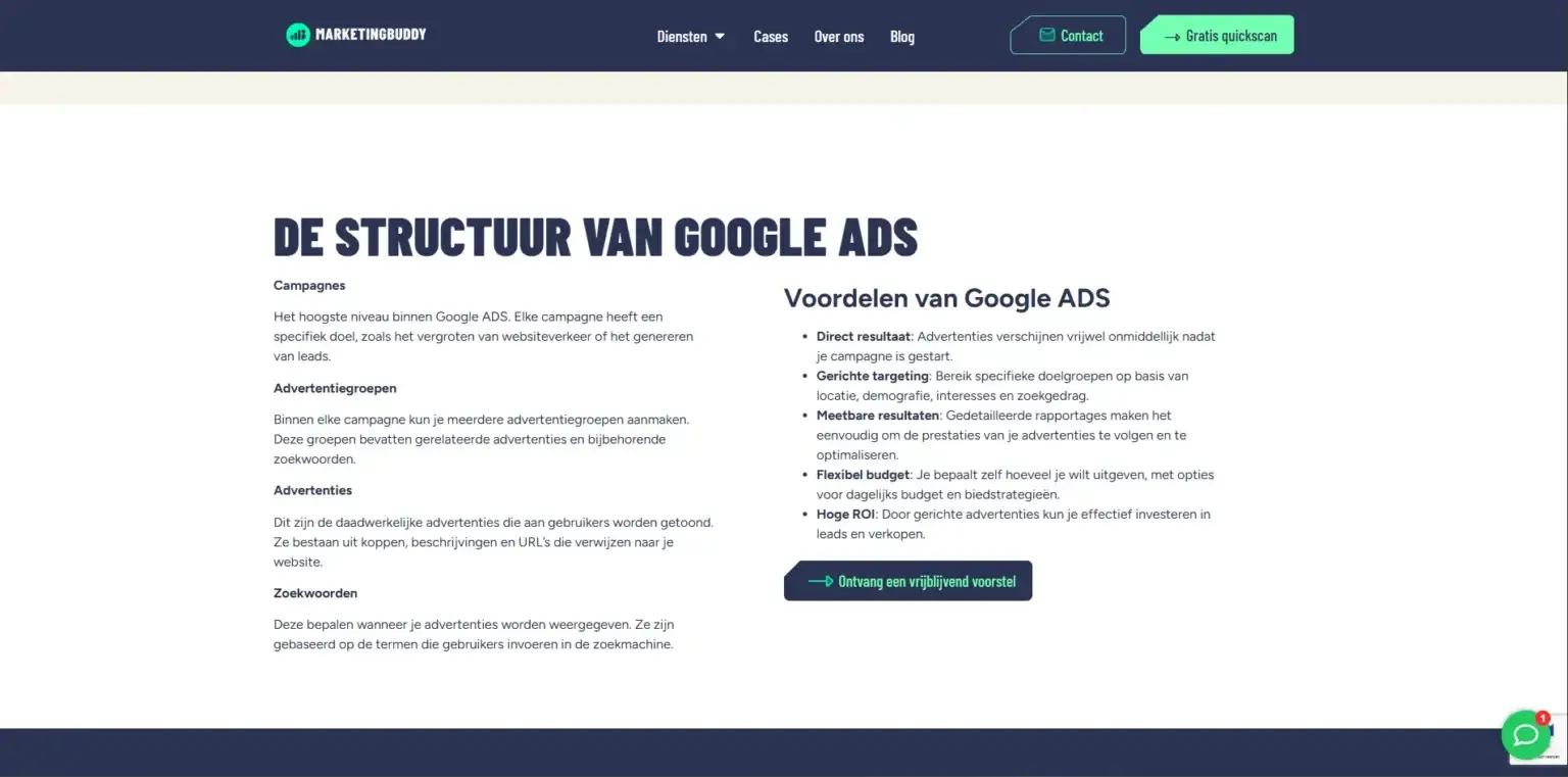 We bouwden de volledige website op maat in WordPress. Elke pagina is flexibel opgebouwd, zodat het team van Marketing Buddy zelf makkelijk teksten kan aanpassen of nieuwe onderdelen kan toevoegen.