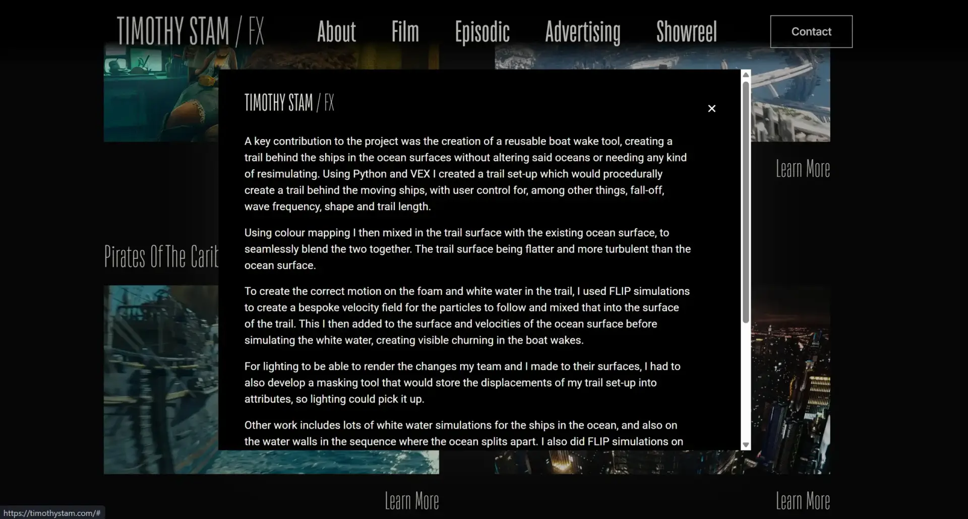 FX Artist Timothy Stam heeft gewerkt aan bekende internationale films en series, waaronder Star Trek en Pirates of the Caribbean. Om zijn werk te kunnen laten zien aan nieuwe opdrachtgevers en studios, wilde hij een duidelijke en professionele website die als online portfolio dient.